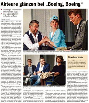 Camolettis unverwüstlicher Klassiker in einer Neufassung von Peter Loos, die wirklich modern und heutig ist. Erzählt wird die Geschichte von Tony (Ercan Özmen), einem erfolgreichen Architekten, der ganz in der Nähe des Frankfurter Flughafens lebt und sich in eine Stewardess verliebt. In eine? Nein, flugs sind es drei junge Damen (Alexandra Ben, Evelina Valla und Claudia Würth) von unterschiedlichen Fluglinien, die praktischerweise verschiedene Routen fliegen und sich zu unterschiedlichen Zeiten am Boden aufhalten. Das Liebesleben nach Flugplan ist ein Kinderspiel. Tonys Haushälterin (Anne Giusa) unterstützt ihren Arbeitgeber bereitwillig und bekocht die Frauen sogar mit ihren jeweiligen Lieblingsspeisen. Alles funktioniert bestens, bis Paul (Tobias Hess), Tonys Jugendfreund, auftaucht, der kein freies Hotelzimmer gefunden hat und nun auch bei Tony logiert. Ein Zusammentreffen mit den Freundinnen seines Freundes ist unvermeidlich, das Chaos beginnt. Und plötzlich sitzt er alleine in seinem Luxusapartment ....
